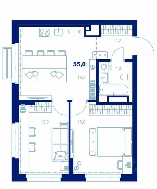 Здесь можно создать отдельную спальню, кабинет или просторную гостиную — планировка легко адаптируется под ваш стиль жизни.