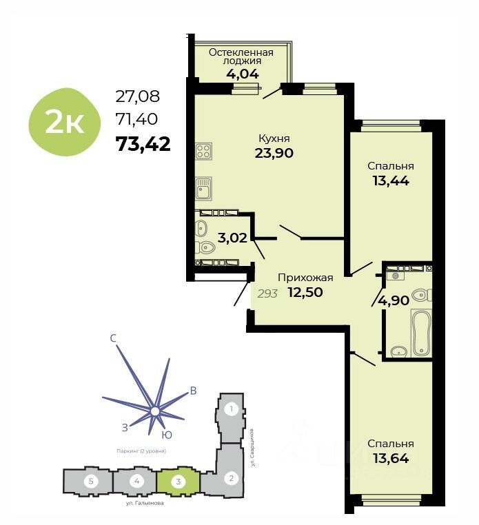 Общая площадь73,42 м2