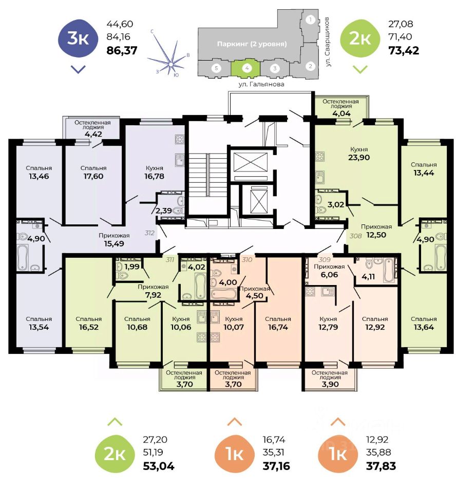 Архитектурная концепция —удобная и продуманная жизнь! Улучшенные планировки, большой просторный двухуровневый паркинг, кладовые!