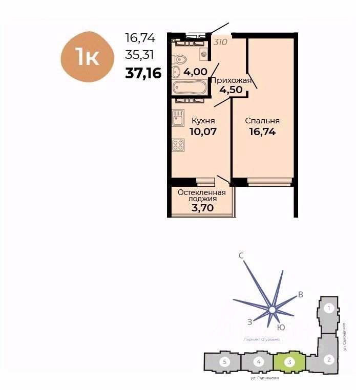 Общая площадь37,16 м2