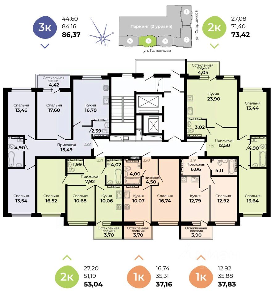 Архитектурная концепция —удобная и продуманная жизнь! Улучшенные планировки, большой просторный двухуровневый паркинг, кладовые!