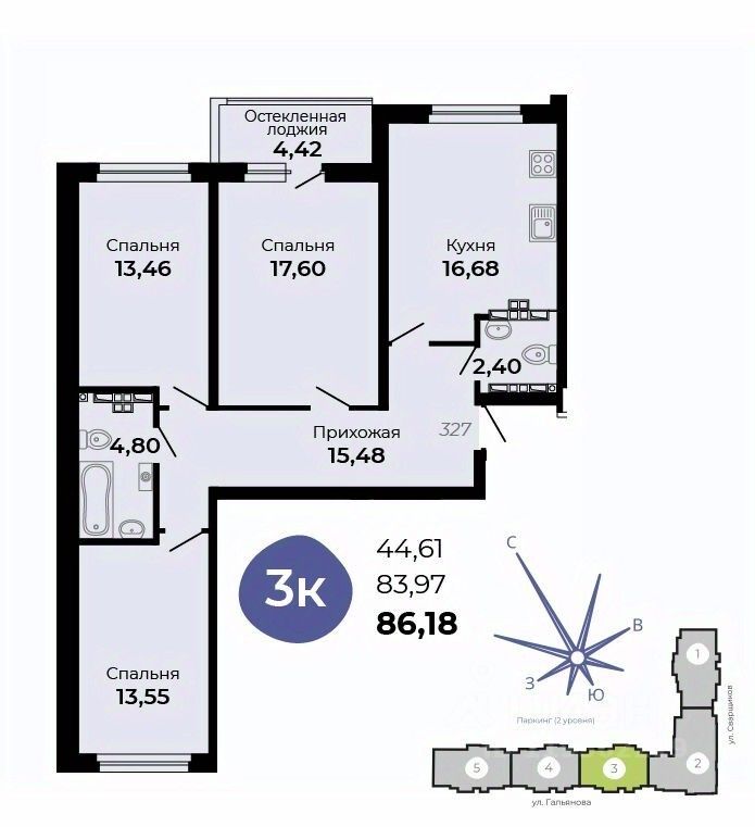 Общая площадь86,18 м2