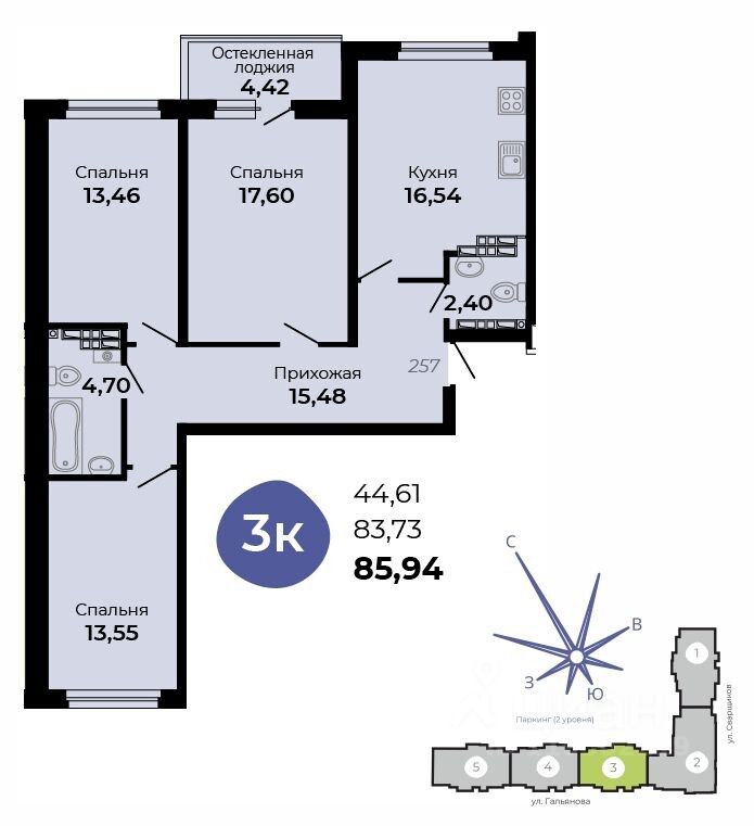 Архитектурная концепция —удобная и продуманная жизнь! Улучшенные планировки, большой просторный двухуровневый паркинг, кладовые!