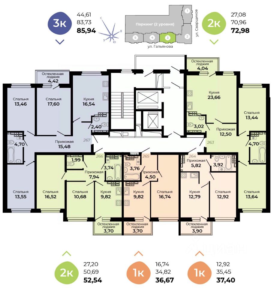 Архитектурная концепция —удобная и продуманная жизнь! Улучшенные планировки, большой просторный двухуровневый паркинг, кладовые!