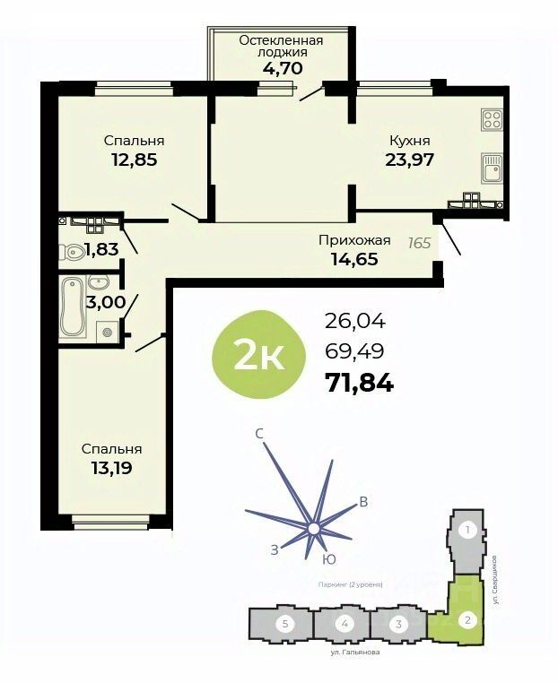 Общая площадь71,84 м2