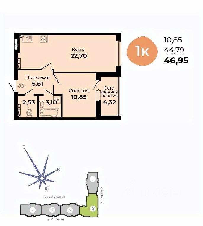 Общая площадь46,95 м2