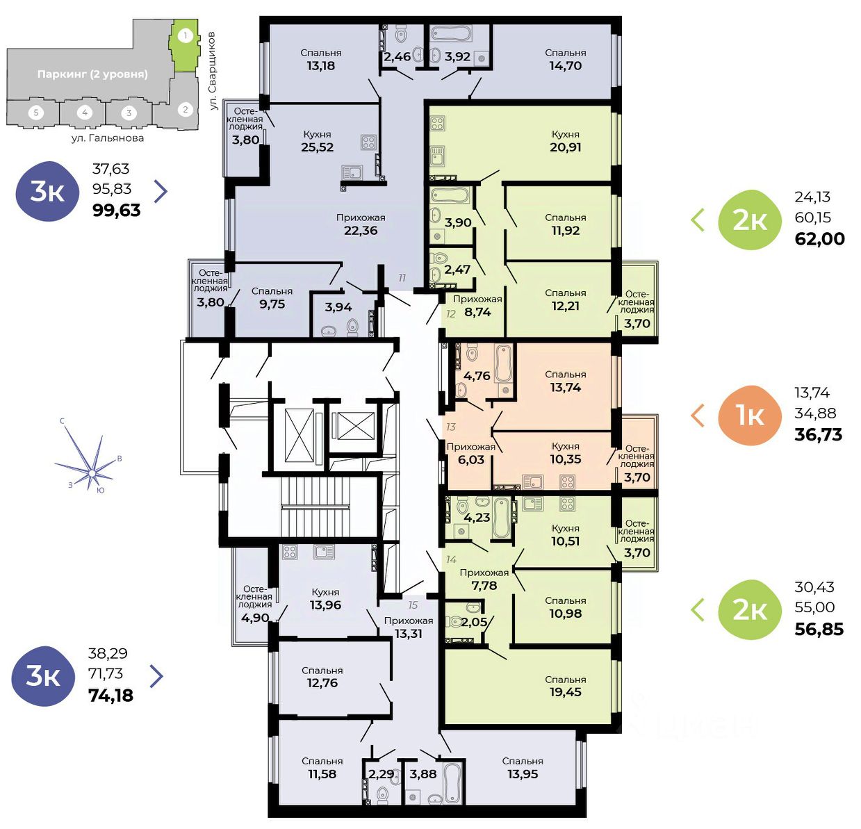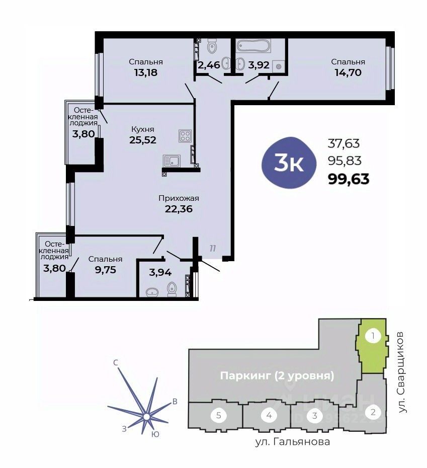 Архитектурная концепция —удобная и продуманная жизнь! Улучшенные планировки, большой просторный двухуровневый паркинг, кладовые!