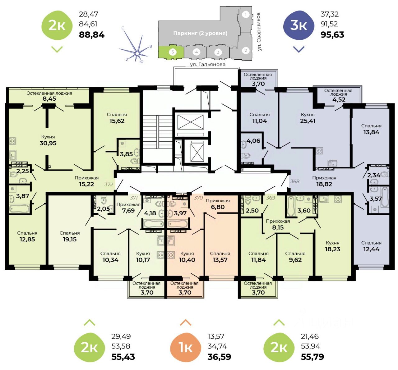 Архитектурная концепция —удобная и продуманная жизнь! Улучшенные планировки, большой просторный двухуровневый паркинг, кладовые!