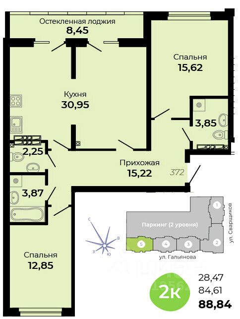 Общая площадь88,84 м2