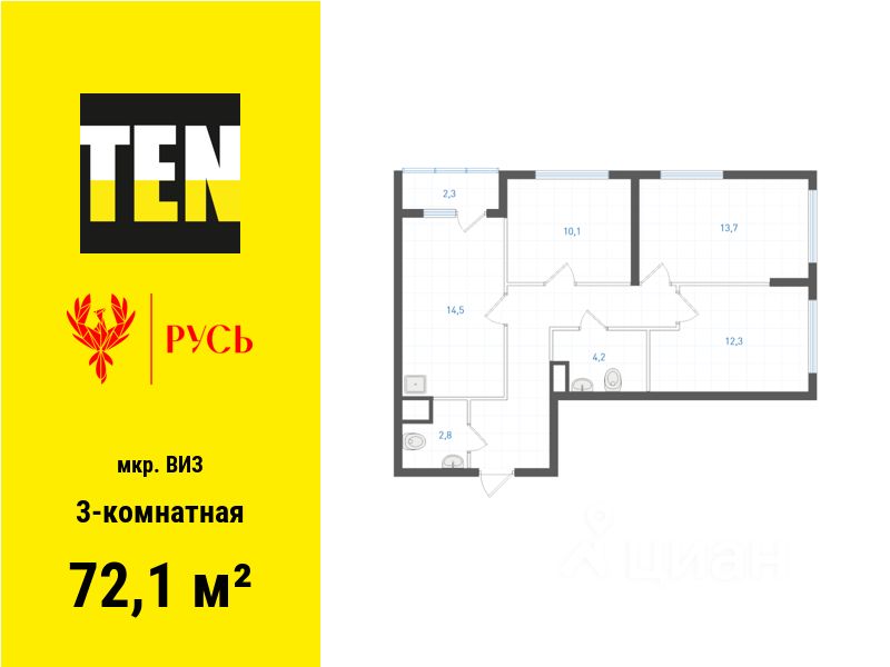 Общая площадь72,1 м2