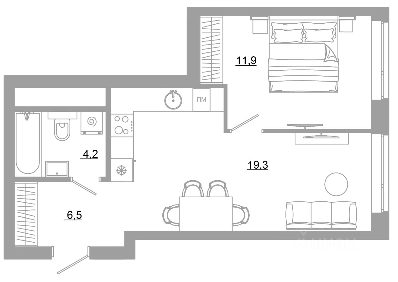 Общая площадь41,9 м2