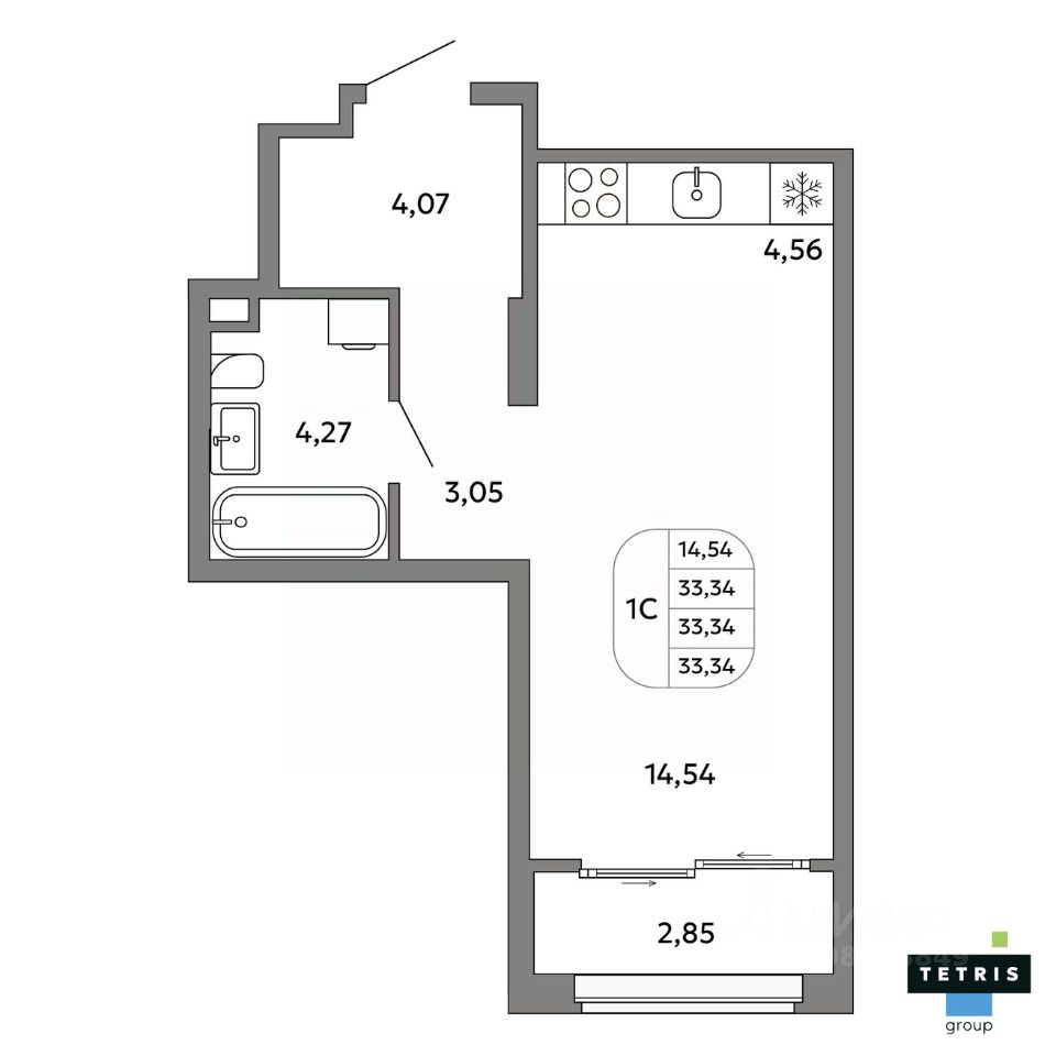 Общая площадь33,34 м2