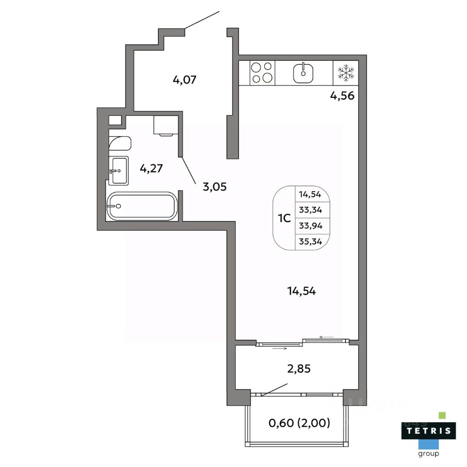 Общая площадь33,94 м2