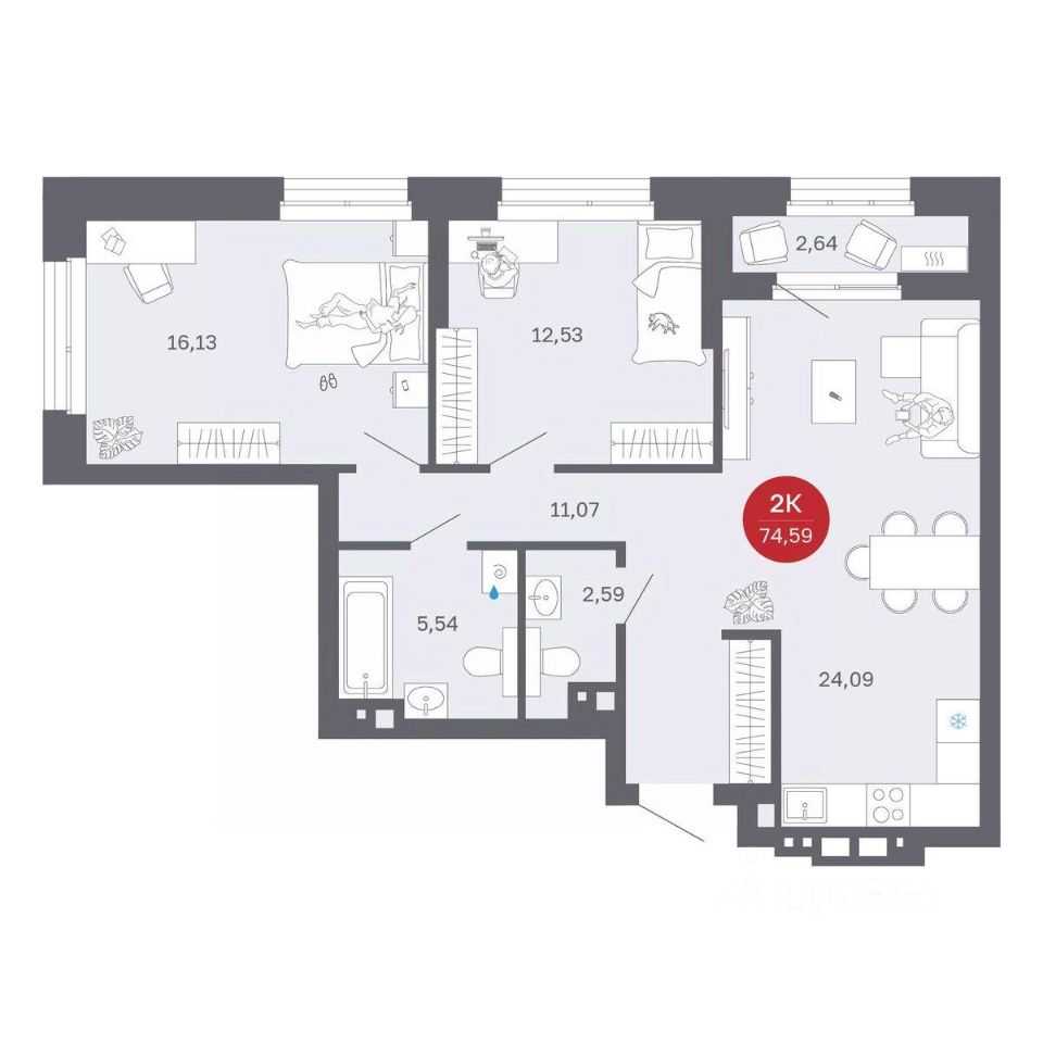 Продаётся 2-комнатная квартира в строящемся доме (Секции 1-4), срок сдачи: II-кв. 2027, общей площадью 71.95 кв.м., на 8 этаже. Новый жилой комплекс ''Сибирская калина'' от застройщика ''СЗ Атлант-Екатеринбург'' расположен по адресу: г. Екатеринбург, улица Титова.