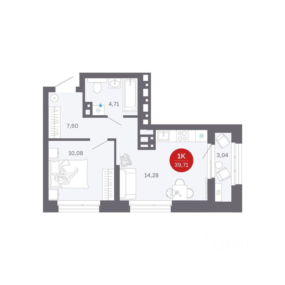 Продаётся 1-комнатная квартира в строящемся доме (Секции 1-4), срок сдачи: II-кв. 2027, общей площадью 39.71 кв.м., на 12 этаже. Новый жилой комплекс ''Сибирская калина'' от застройщика ''СЗ Атлант-Екатеринбург'' расположен по адресу: г. Екатеринбург, улица Титова.