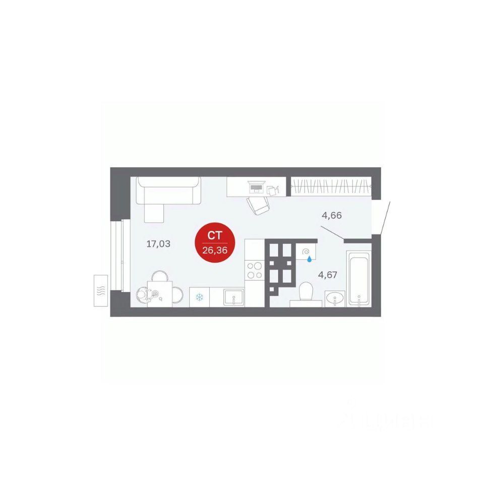Продаётся студия в строящемся доме (Секции 1-4), срок сдачи: II-кв. 2027, общей площадью 26.36 кв.м., на 22 этаже. Новый жилой комплекс ''Сибирская калина'' от застройщика ''СЗ Атлант-Екатеринбург'' расположен по адресу: г. Екатеринбург, улица Титова.