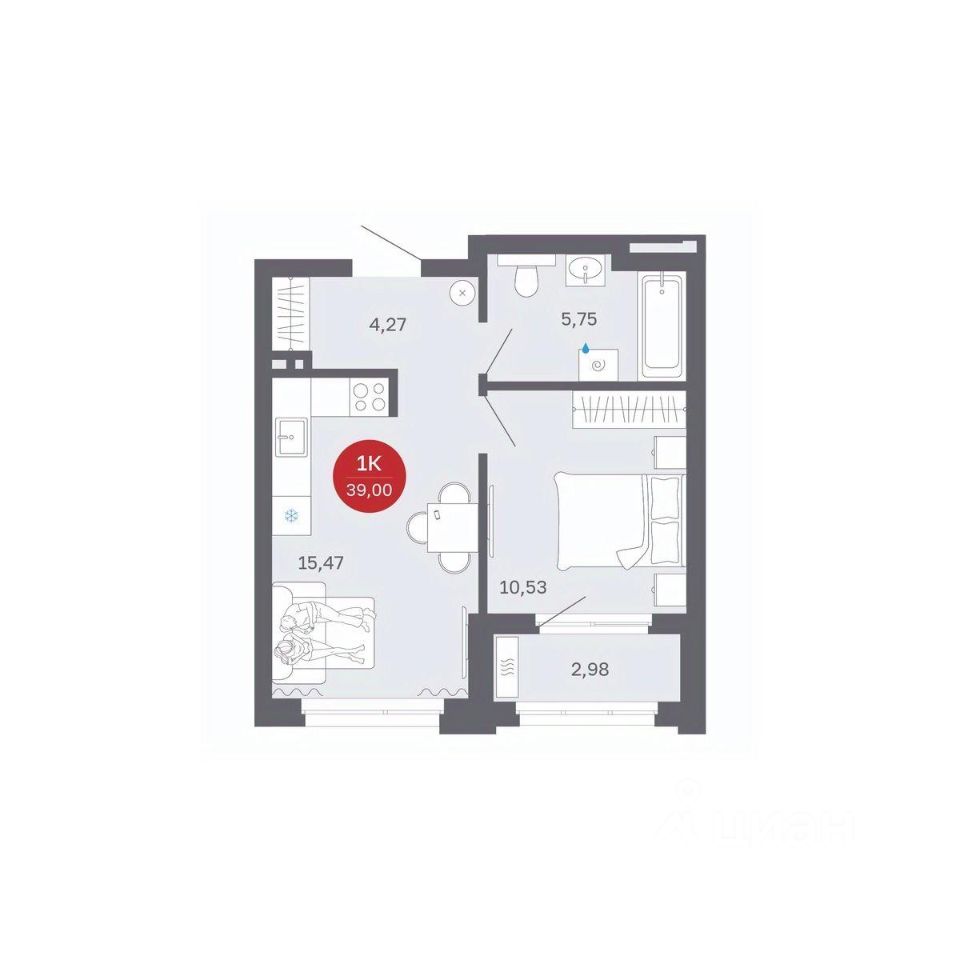 Продаётся 1-комнатная квартира в строящемся доме (Секции 1-4), срок сдачи: II-кв. 2027, общей площадью 39 кв.м., на 2 этаже. Новый жилой комплекс ''Сибирская калина'' от застройщика ''СЗ Атлант-Екатеринбург'' расположен по адресу: г. Екатеринбург, улица Титова.