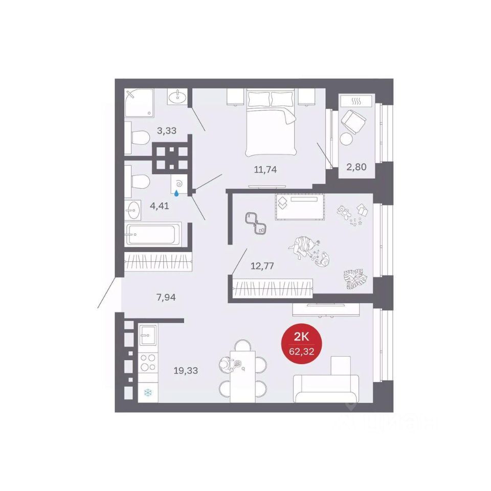 Продаётся 2-комнатная квартира в строящемся доме (Секции 1-4), срок сдачи: II-кв. 2027, общей площадью 59.52 кв.м., на 25 этаже. Новый жилой комплекс ''Сибирская калина'' от застройщика ''СЗ Атлант-Екатеринбург'' расположен по адресу: г. Екатеринбург, улица Титова.