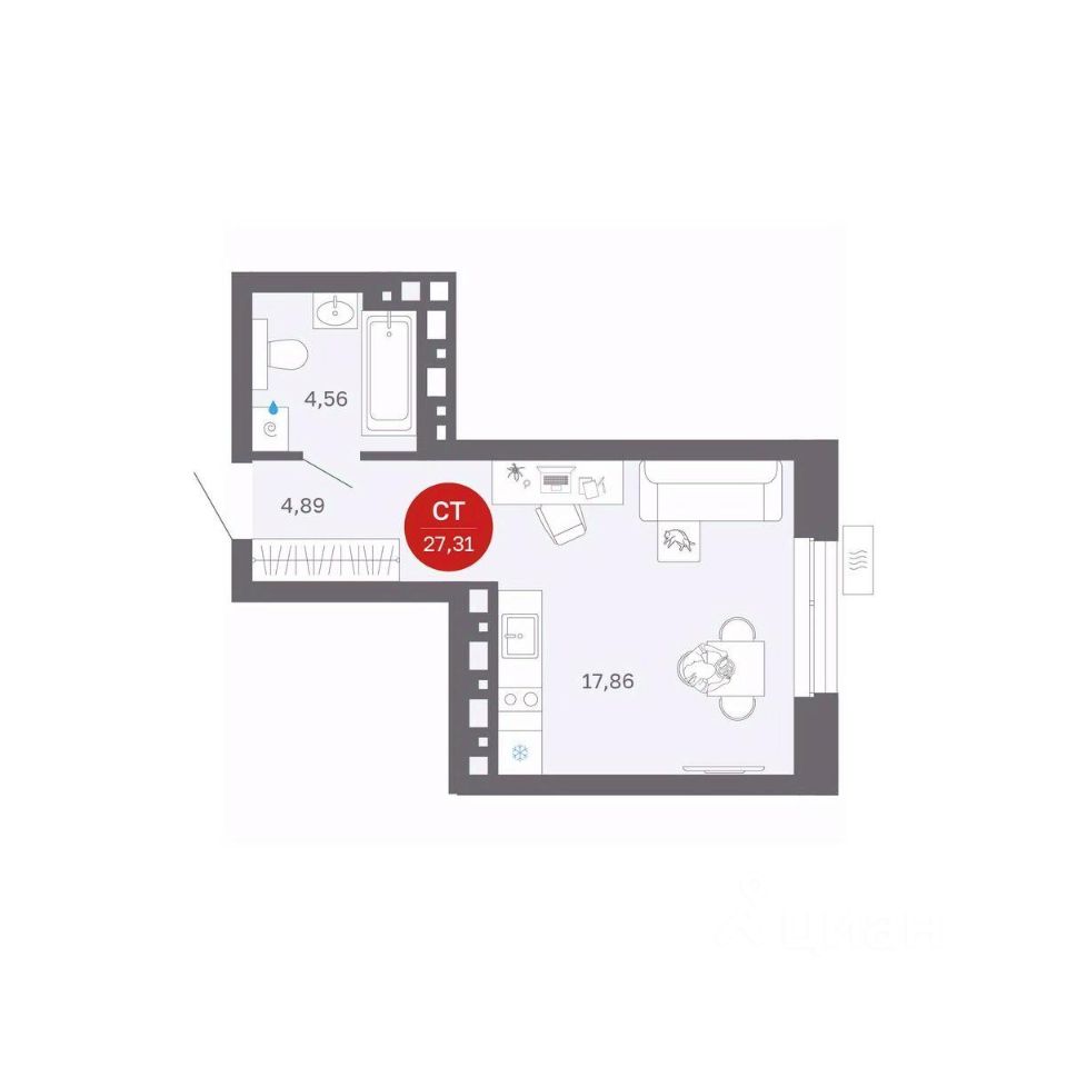 Продаётся студия в строящемся доме (Секции 1-4), срок сдачи: II-кв. 2027, общей площадью 27.31 кв.м., на 25 этаже. Новый жилой комплекс ''Сибирская калина'' от застройщика ''СЗ Атлант-Екатеринбург'' расположен по адресу: г. Екатеринбург, улица Титова.