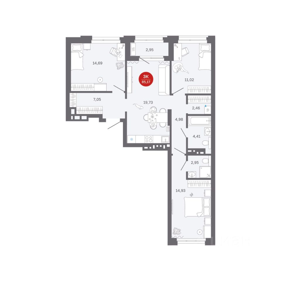 Продаётся 3-комнатная квартира в строящемся доме (Секции 1-4), срок сдачи: II-кв. 2027, общей площадью 82.22 кв.м., на 9 этаже. Новый жилой комплекс ''Сибирская калина'' от застройщика ''СЗ Атлант-Екатеринбург'' расположен по адресу: г. Екатеринбург, улица Титова.