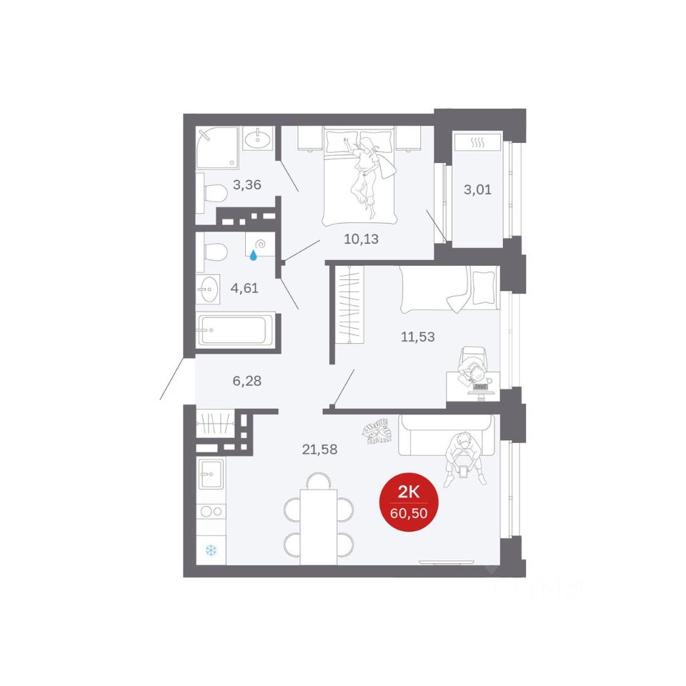 Продаётся 2-комнатная квартира в строящемся доме (Секции 1-4), срок сдачи: II-кв. 2027, общей площадью 57.49 кв.м., на 6 этаже. Новый жилой комплекс ''Сибирская калина'' от застройщика ''СЗ Атлант-Екатеринбург'' расположен по адресу: г. Екатеринбург, улица Титова.