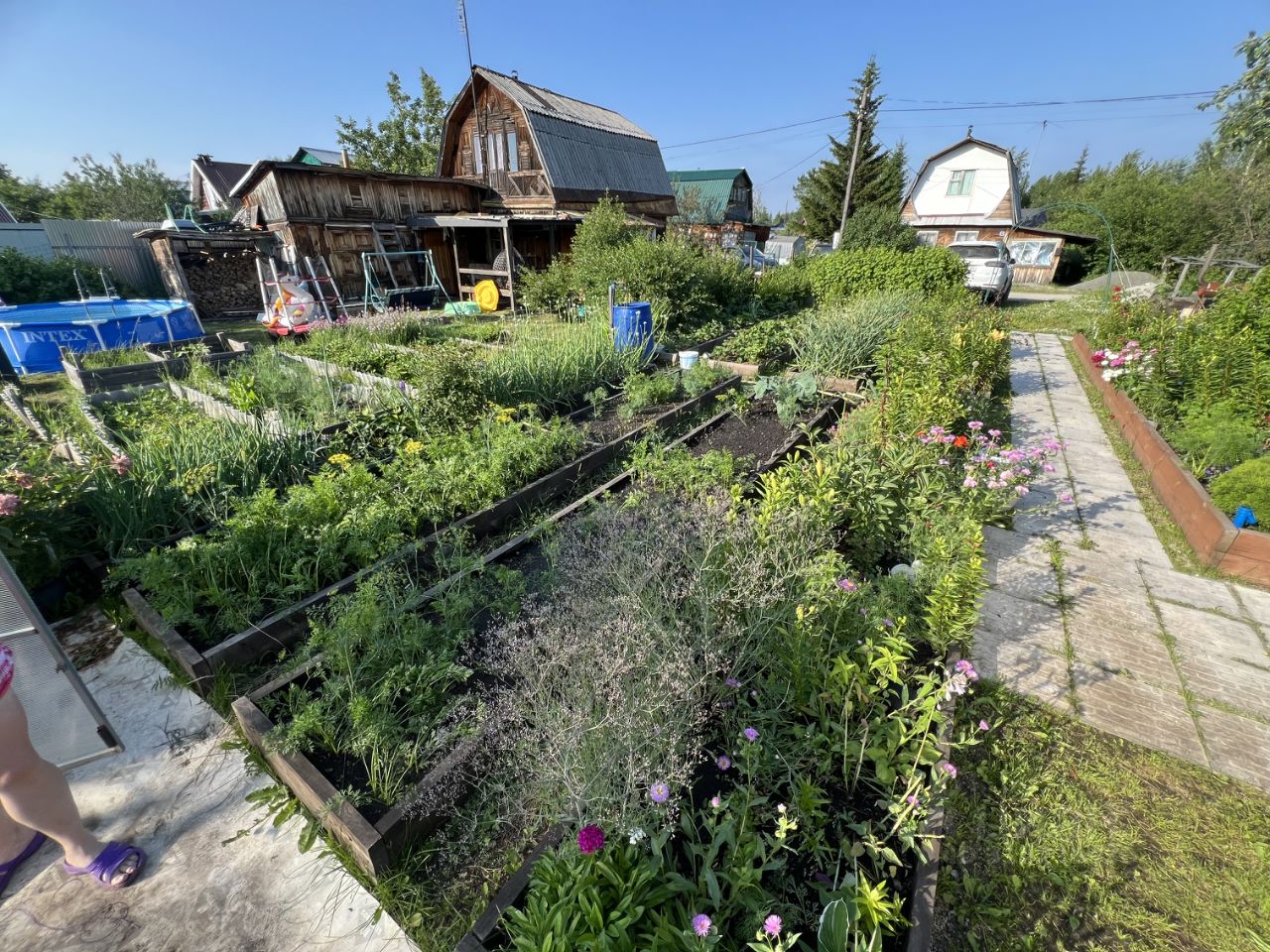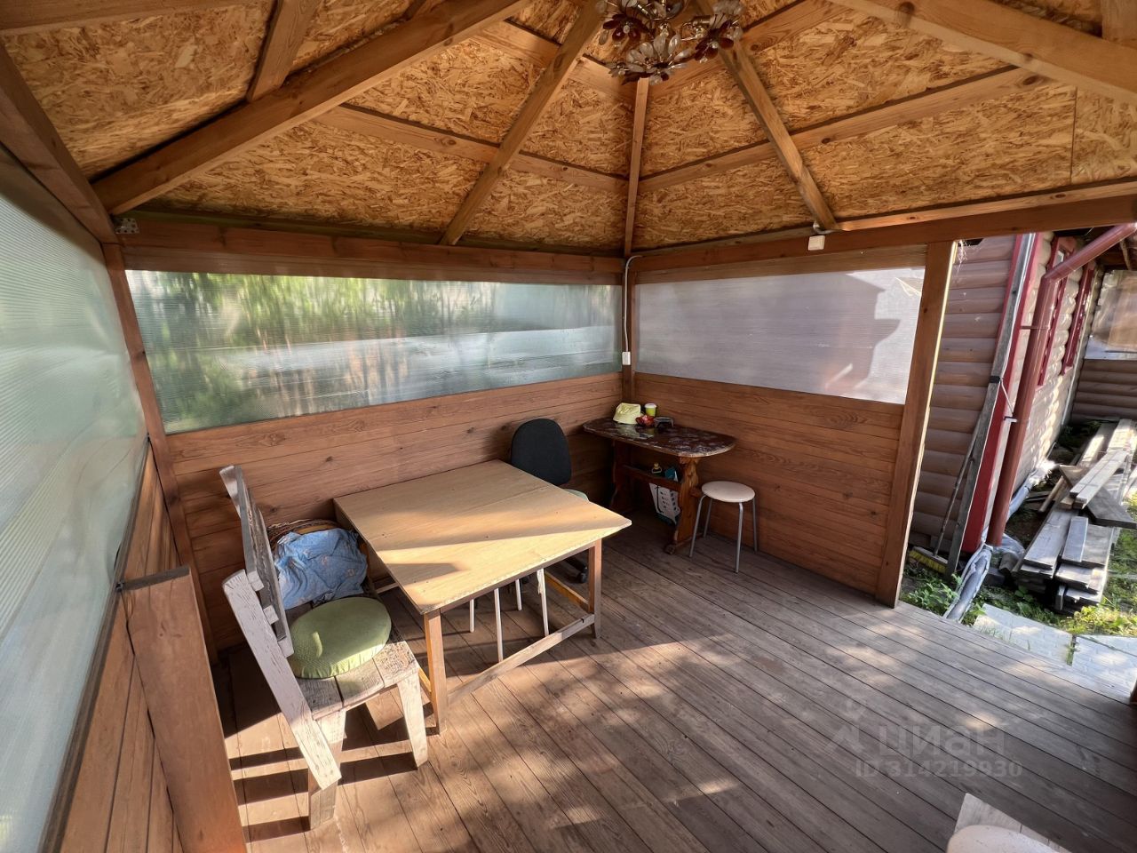 Особенности участка: 1.Участок ухоженный, высоко поднят, не заливает водой при сильных ливнях. 2. По участку проведен водопровод (из своей скважины) в четырёх точках. 3. Для удобства передвижения по территории, выложена дорожка из плитки. 4. Есть место для авто (1-3 машин). 5. На территории посажены плодово-ягодные культуры. 6. Сад густо засажен цветами. 7. На участке есть 2 теплицы из карбоната (на двери установлен автоматический механизм открытия/закрытия). 8. На территории установлена просторная беседка с проведенным электричеством. 9. Есть самодельный мангал-барбекю. Есть каркасный бассейн в своём домике (из карбоната) под крышей. 10. Так же, есть старая баня, используемая, как хоз. постройка.