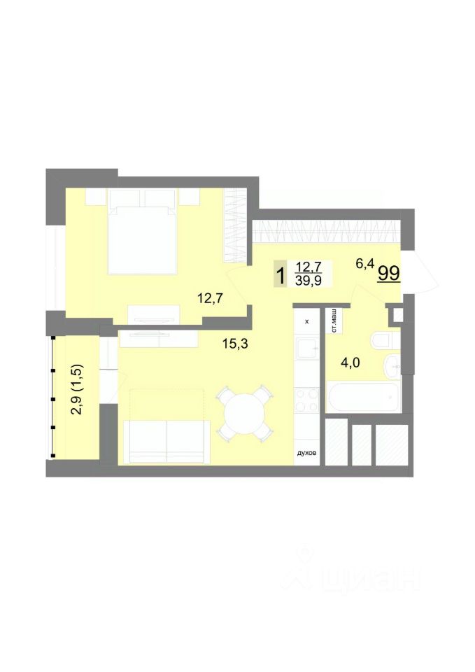 Общая площадь39,9 м2