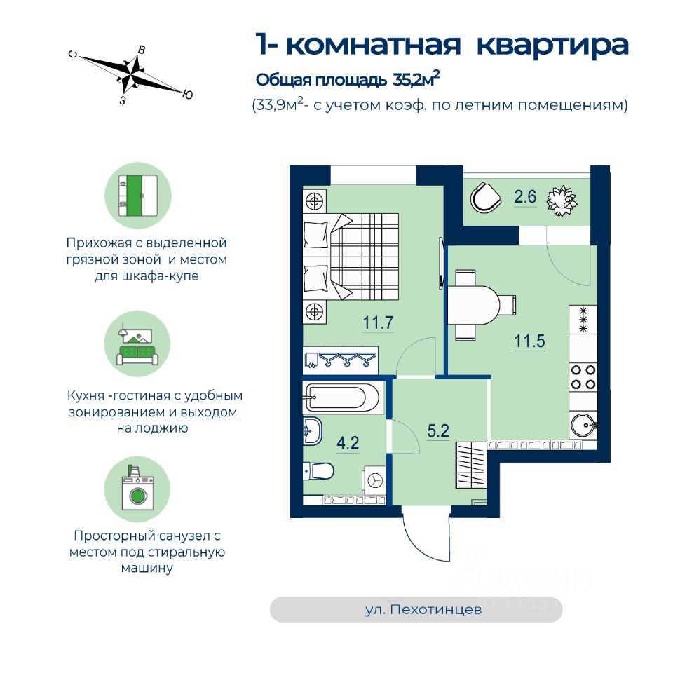 Продаётся 1-комнатная квартира в строящемся доме (Дом 1), срок сдачи: IV-кв. 2025, общей площадью 33.9 кв.м., на 20 этаже. Новый жилой комплекс ''Estelle'' от застройщика ''СЗ Инвестстрой'' расположен по адресу: г. Екатеринбург, улица Пехотинцев.