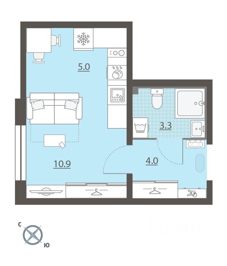 Продается студия, площадью 23.2 м2 в панельной новостройке. Возможен вариант покупки с использованием ипотечных средств, есть рассрочка. Жилая площадь 10.9 м2, кухня 5 м2, чистовая отделка. Раздельных санузлов - нет, балконов - нет, лоджий - нет.