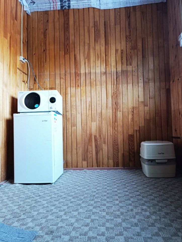 В доме всё новое: стены, пол, натяжной потолок. Дверь с терморазрывом новая. Мебель комплектом: шкаф, столы, прикроватные тумбы. Также, новые холодильник, рукомойник с подогревом, есть микроволновая печь, чайник. Современный Биотуалет портативный с индикатором THETFORD. Также, хороший туалет на улице.