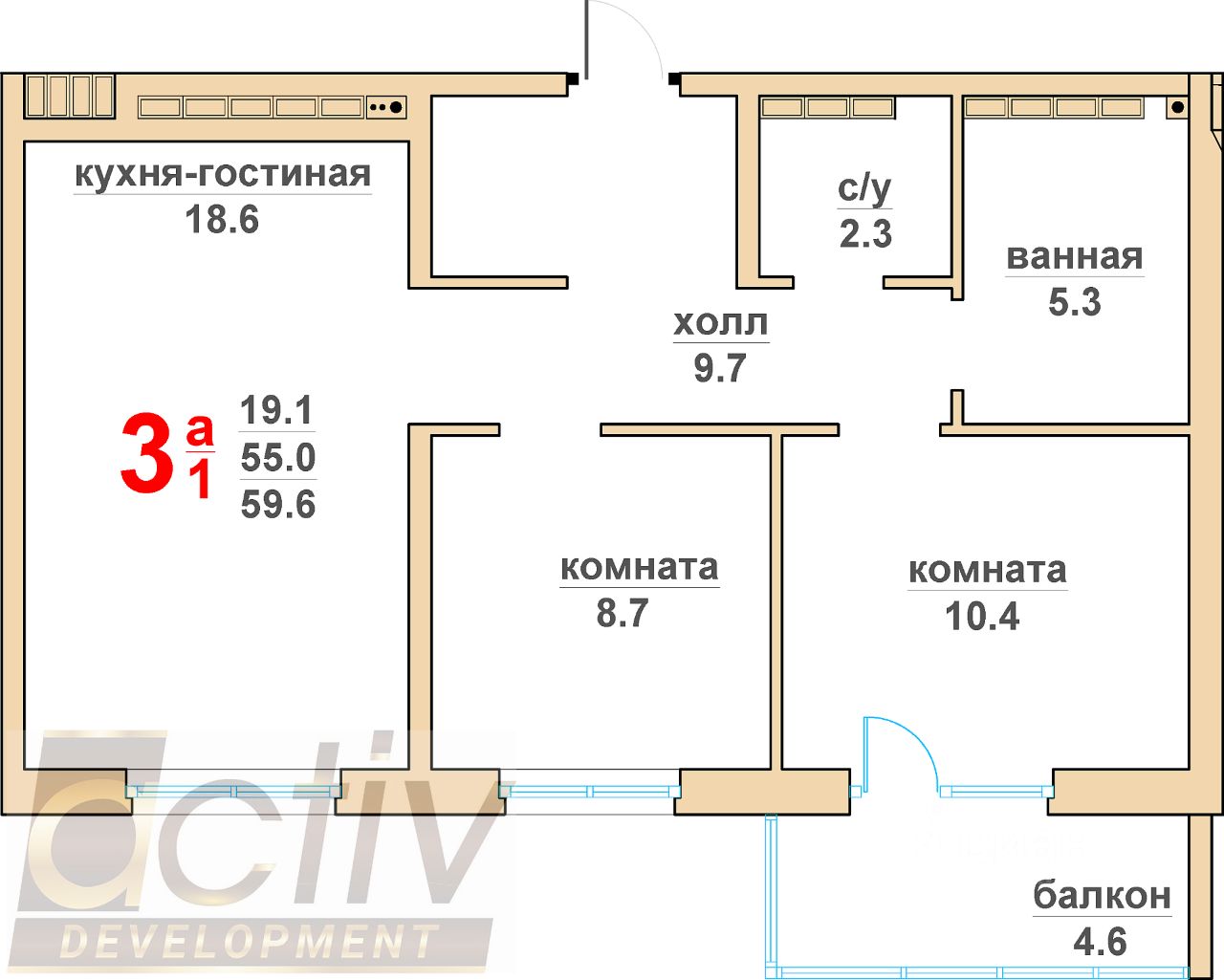 Общая площадь55,3 м2