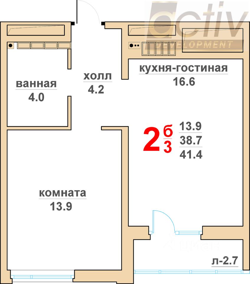 Общая площадь38,7 м2