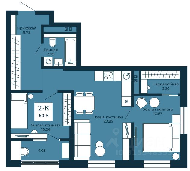 Общая площадь60,8 м2