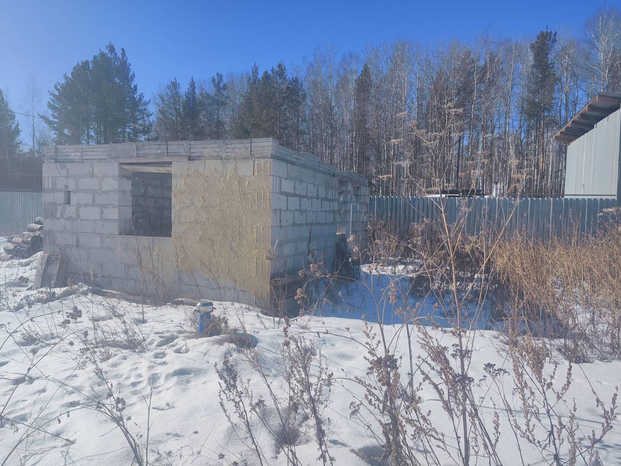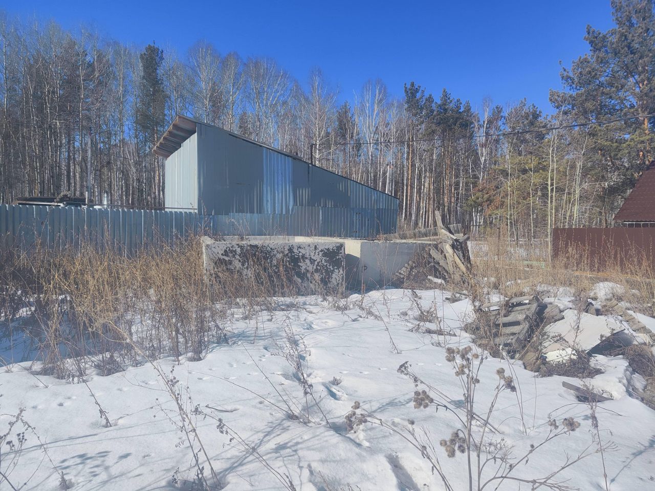 На участке есть недострой, скважина почти 100 метров, электричество не подключено.