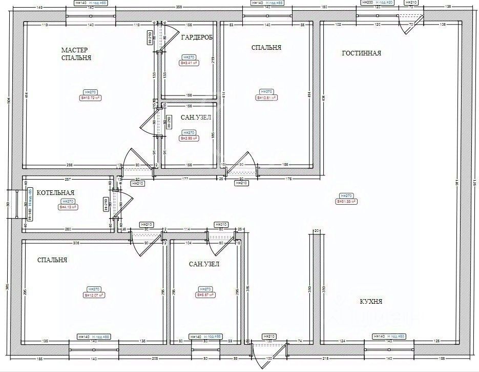 На полу керамогранит, межкомнатные двери, натяжные потолки со светильниками, в санузлах плитка, в котельной котел, водонагреватель.
