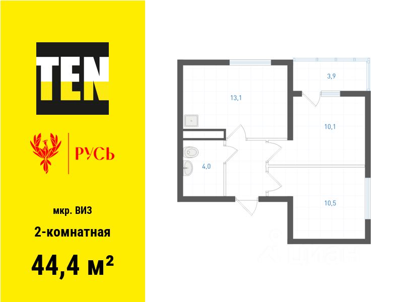 Общая площадь44,4 м2