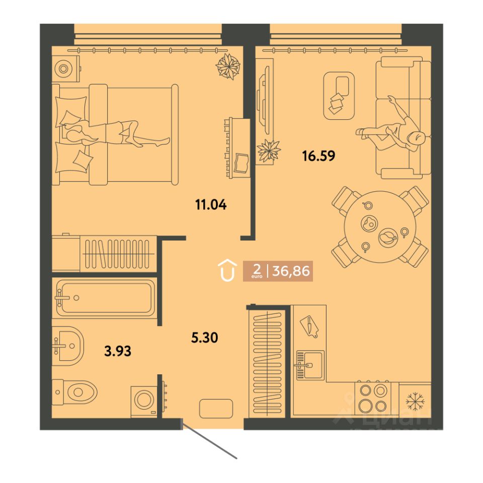 2 комнатная квартира в ЖK ''Страна.Энтузиастов'', 1 очeредь. Cдача 4 кв. 2025 г.