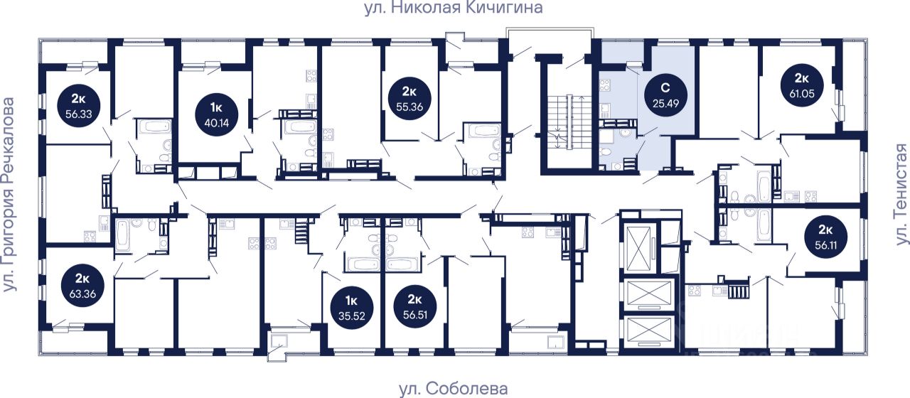 Пластиковые окна с двухкамерными стеклопакетами гарантируют теплосбережение зимой, а приточные клапаны вентиляции — поступление свежего воздуха летом. Установлены надёжная входная и стильные межкомнатные двери. На полу в прихожих, комнатах и кухнях уложен ламинат, а в уборных — керамическая плитка. Стены в санузлах окрашены, а также установлены раковины, смесители и унитазы. Стены комнат, кухонь и коридоров обклеены виниловыми обоями на флизелиновой основе. Розетки и выключатели расположены так, что ими удобно пользоваться. Радиаторы отопления с горизонтальной разводкой и терморегуляторами позволят установить комфортную температуру. На воду, электричество и тепло установлены телеметрические счётчики, а данные с них передаются автоматически.