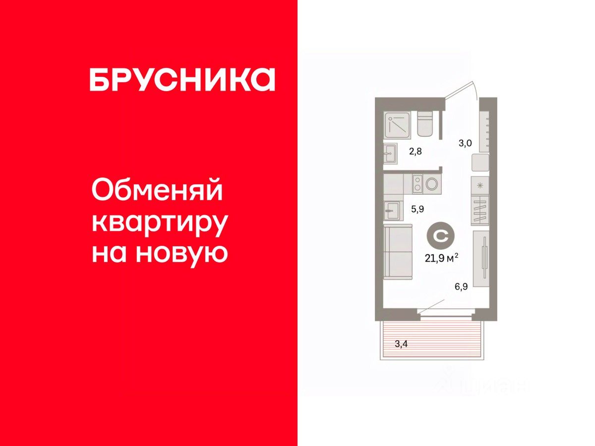 Студия в квартале ''Депо''. Особенности планировки: балкон, предчистовая отделка. квартиры в нашей базе: ДЕП07-Ж4.3.6.