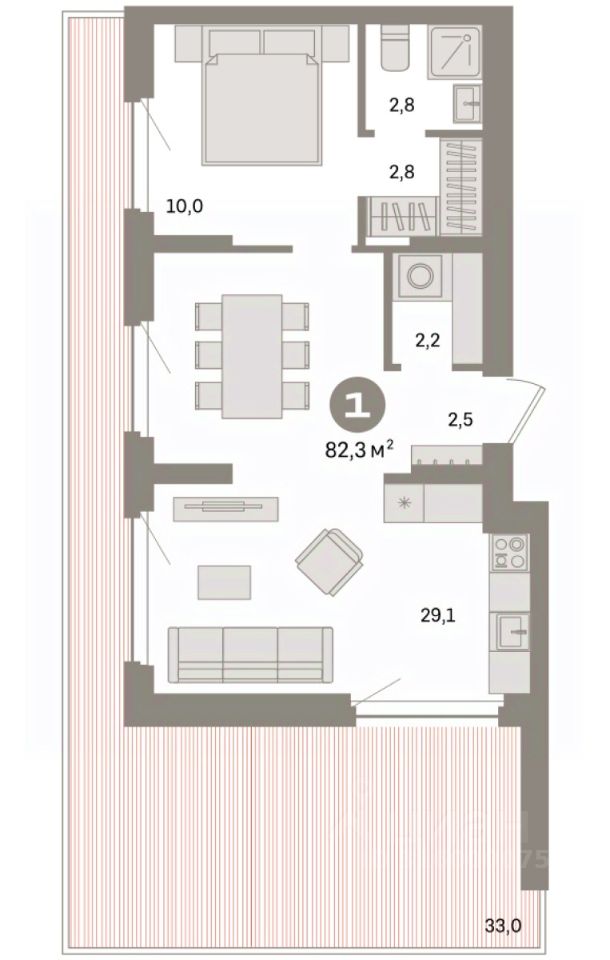 Квартира с кухней-гостиной и одной спальней в квартале ''Депо''. Особенности планировки: предчистовая отделка, терраса на крыше. квартиры в нашей базе: ДЕП07-Ж6.8.4.