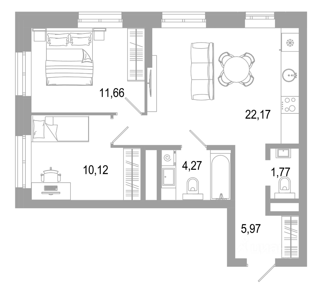 Общая площадь54,84 м2