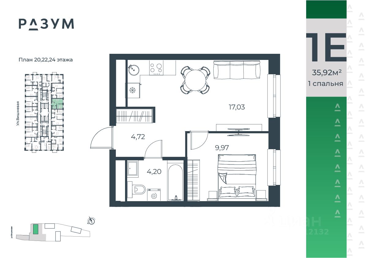 Застройщик - Специализированный застройщик «Разум на Вишневой», ООО. Проектная декларация опубликована на сайте наш.дом.рф