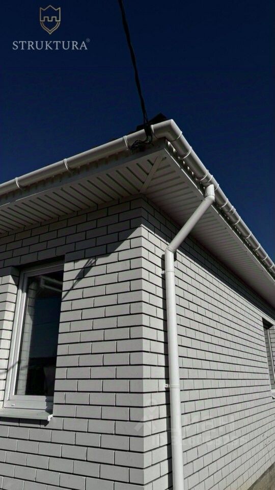 Фасад дома, оформленный силикатным белым кирпичом, является не только стильным, но и практичным, а элегантная бордовая металлочерепица создает шикарный контраст и завершает общее впечатление. Вдобавок, по периметру дома установлена современная водосточная система, что обеспечивает дополнительное удобство в эксплуатации.