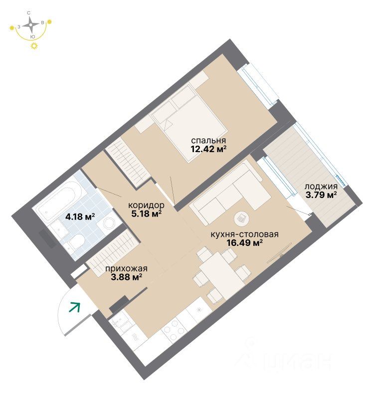 Квартира 2 в подъезде 1.