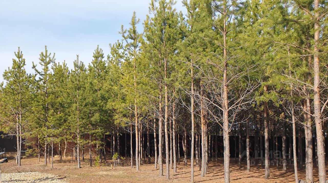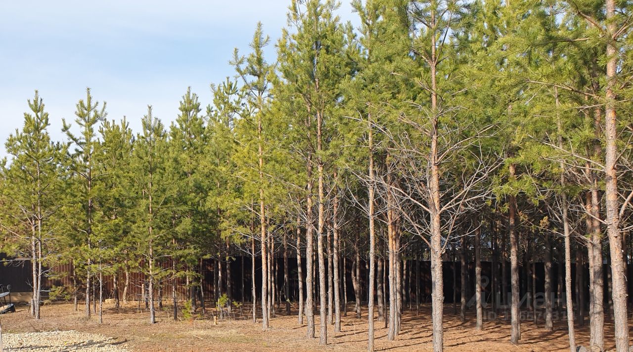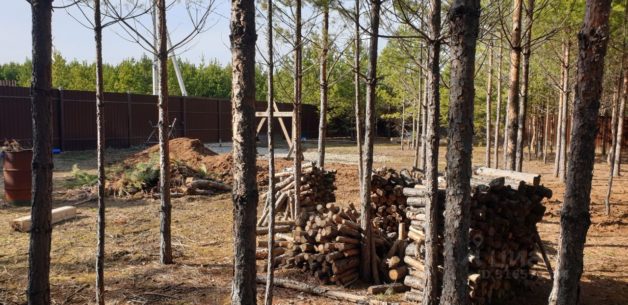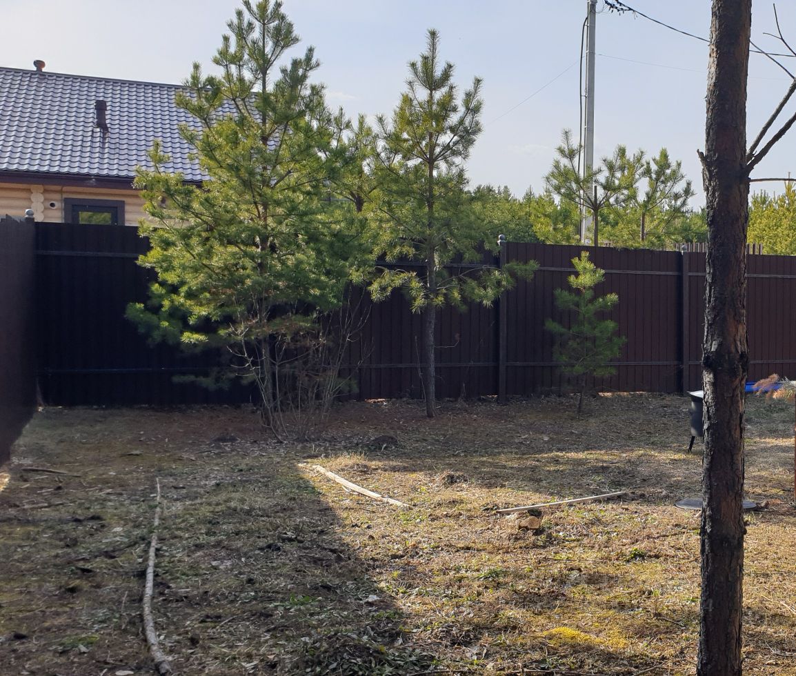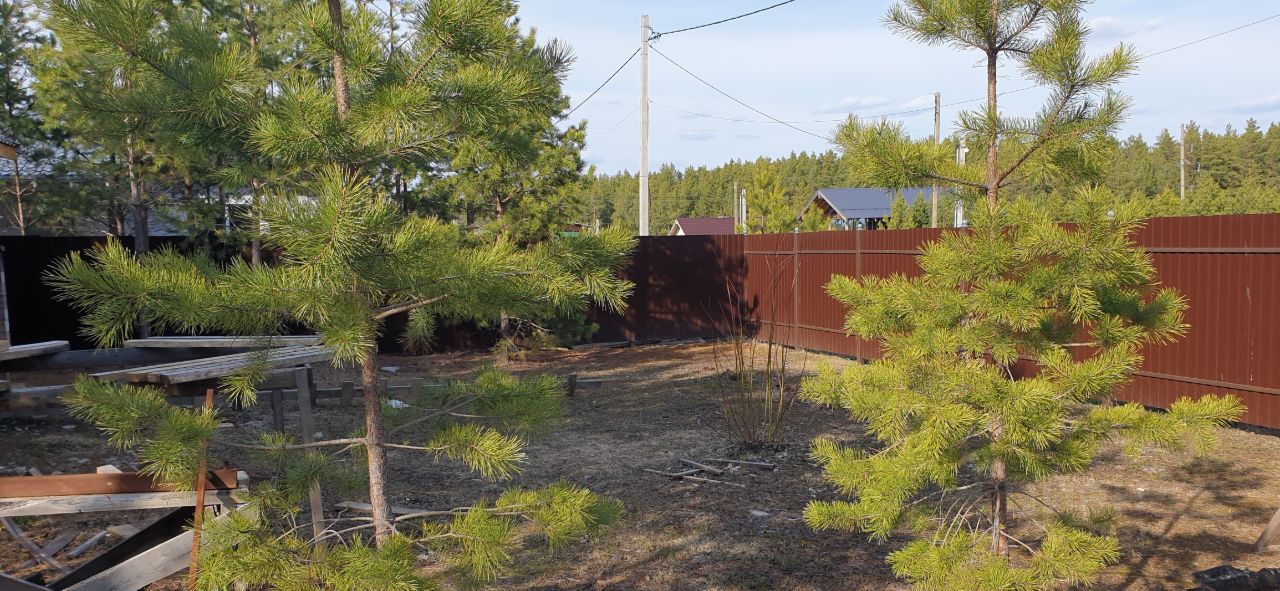 Участок ровный. На участке растут шикарные сосны.