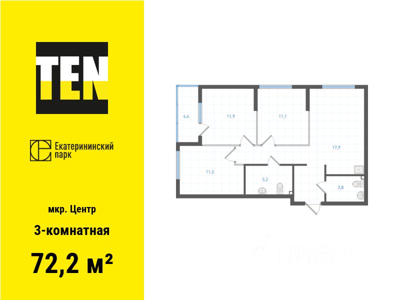 Общая площадь72,2 м2