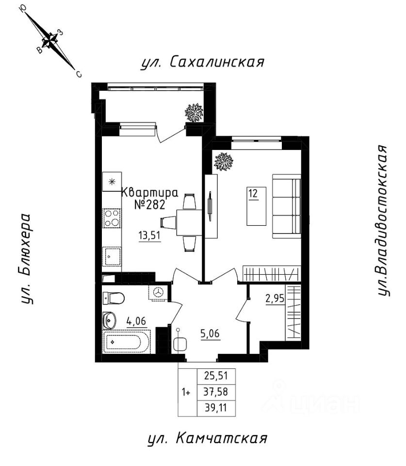 Общая площадь39,11 м2
