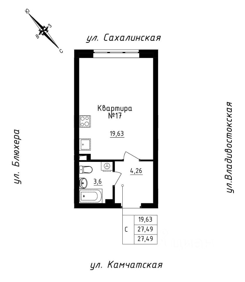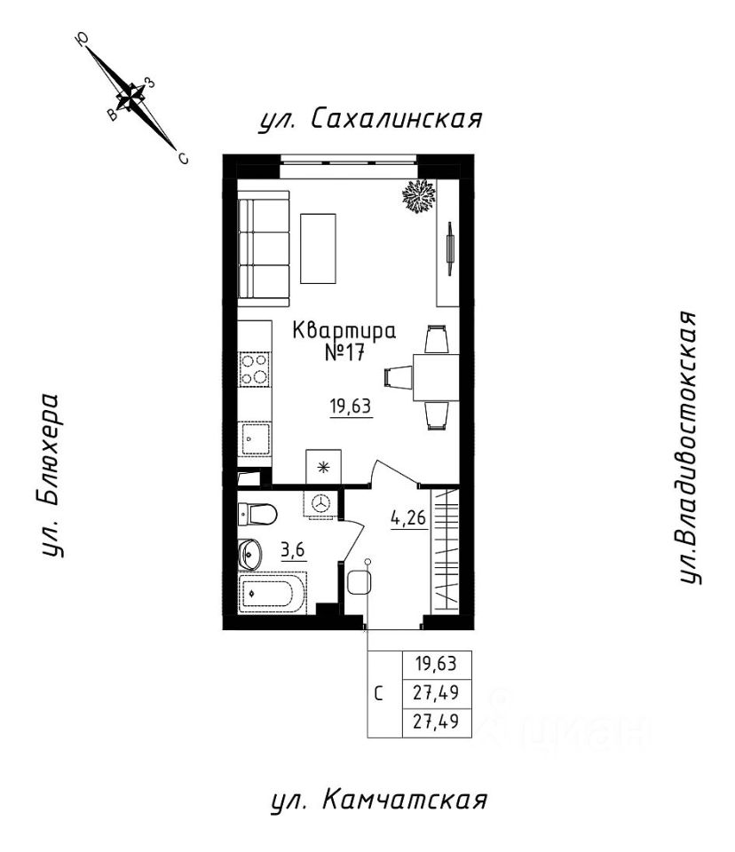 Общая площадь27,49 м2