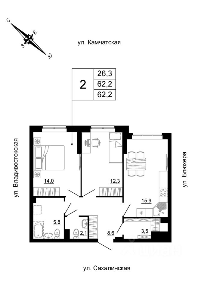продам 2-к, Сахалинская, 2 стр.7 658 064 ₽