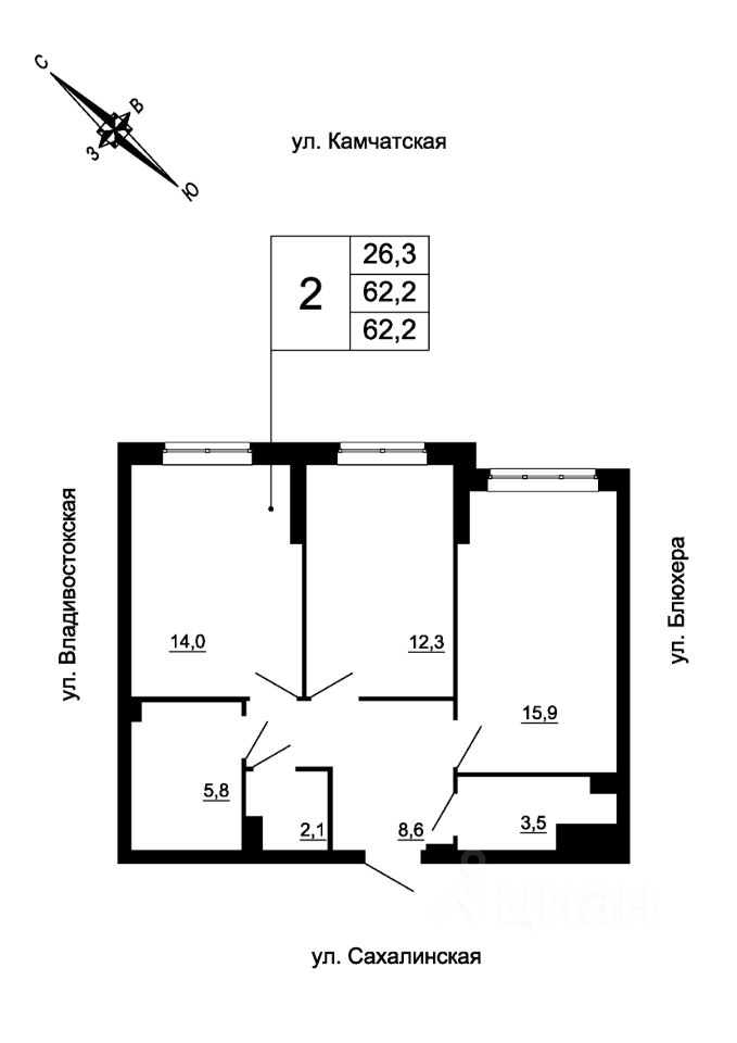 продам 2-к, Сахалинская, 2 стр.7 658 064 ₽